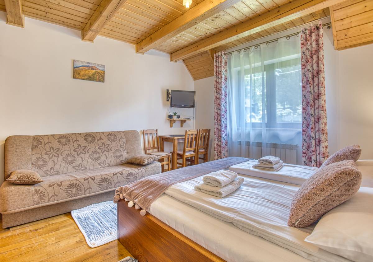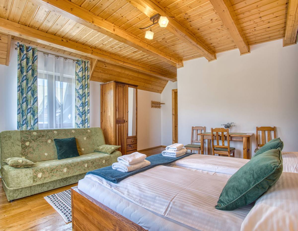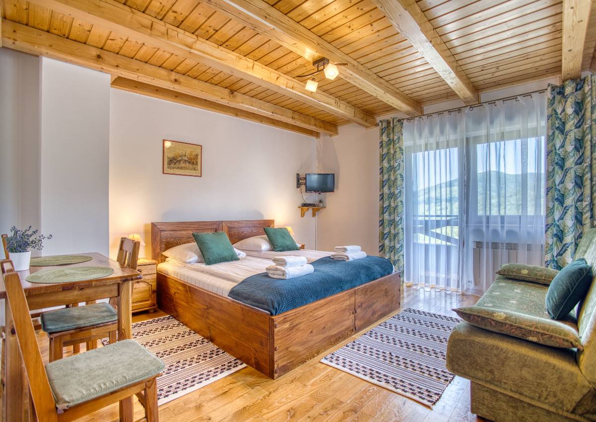 Domki i pokoje są ogrzewane i dostępne przez cały rok. Zimą zachęcamy do odwiedzin narciarzy – w okolicy znajduje się wyciąg narciarski, a po dniu na stoku czeka na Ciebie ciepła herbata i widok na ośnieżone szczyty.